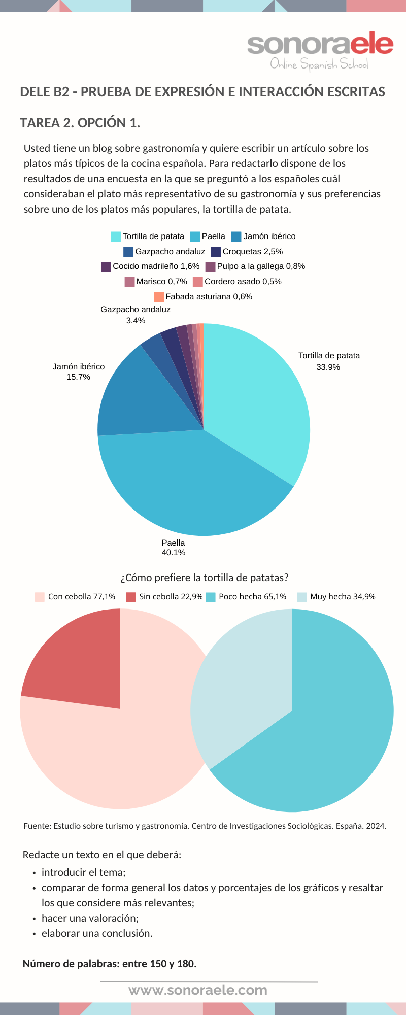 DELE B2. Modelo de tare2 2, opción 1, de expresión escrita. Comentar gráficos. Español.