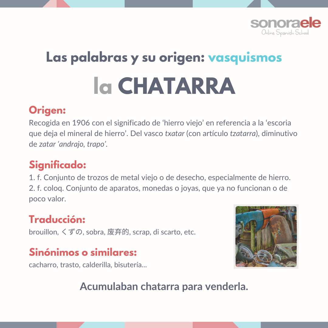 Palabras tan habituales como «izquierda», «mochila» o «pizarra» son préstamos de la lengua vasca al español. Hoy os queremos llamar la atención sobre otra de ellas: «chatarra».