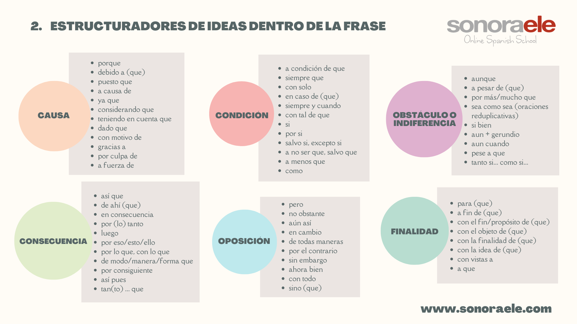 Estructuradores de ideas dentro de la frase. Conectores. Blog. Español.